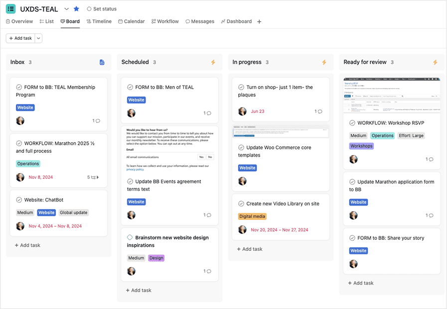 Setting up workflows and task management in Asana to improve organizational efficiency.
